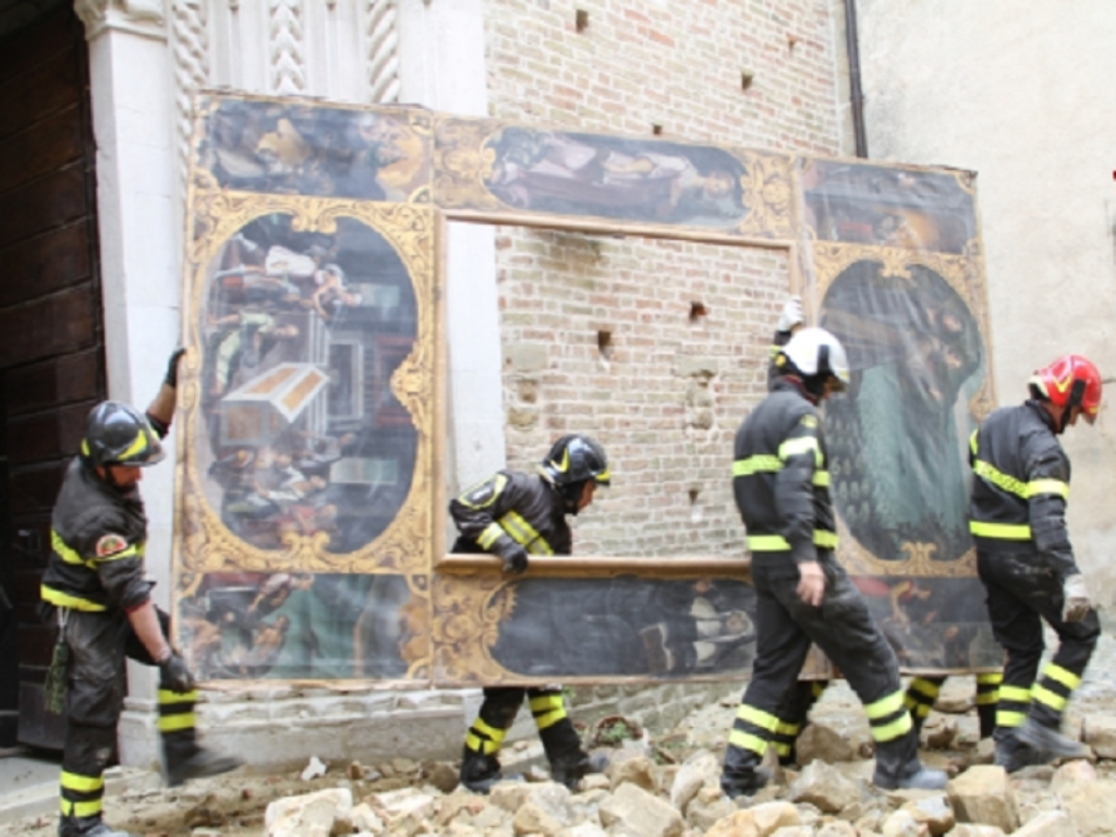 A Camerino, nelle Marche, prosegue la messa in sicurezza degli edifici storici dell’Università mentre ieri i vigili del fuoco hanno recuperato le opere d’arte custodite all’interno della chiesa di San Francesco, nel comune di San Ginesio.