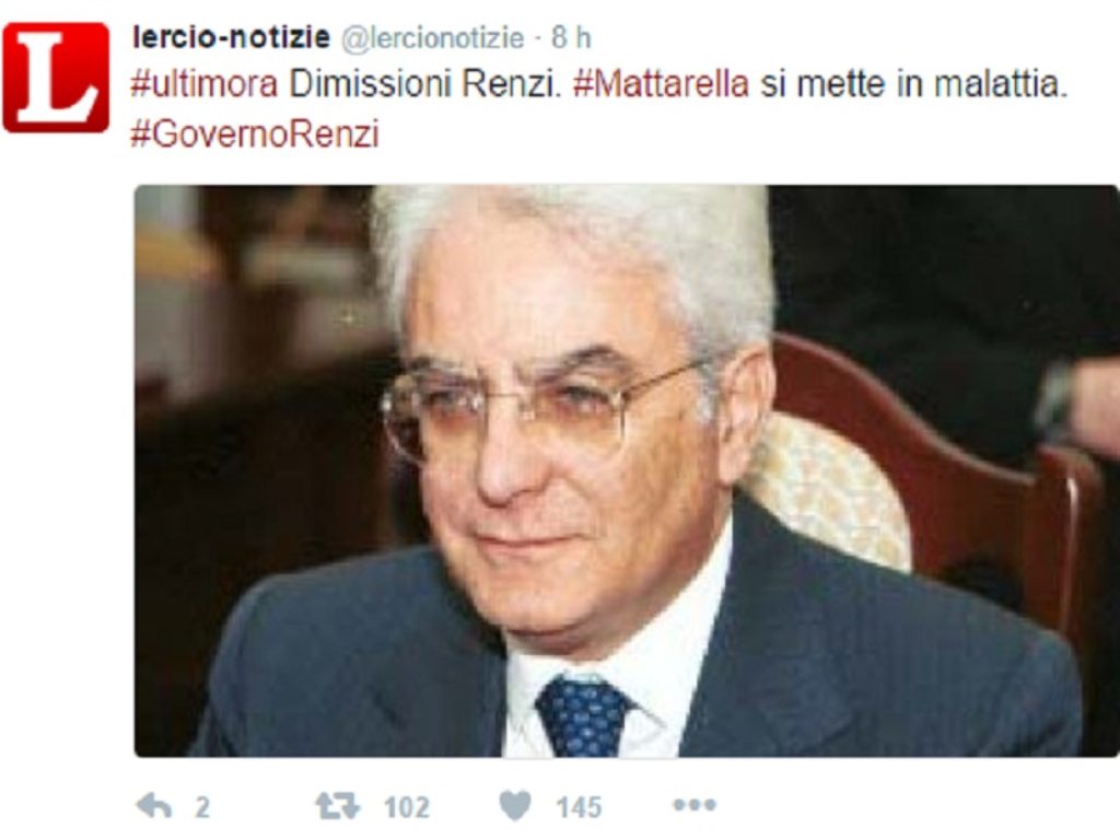 ROMA – Nelle ultime ore la satira sta andando a nozze con la crisi di Governo scatenata dall’esito del referendum sulle riforme costituzionali. Il compito di sbrogliare la matassa spetta al Presidente della Repubblica, Sergio Mattarella, che lunedì ha ricevuto per due volte Renzi.