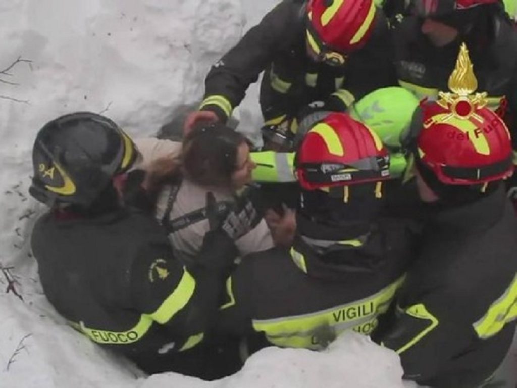ROMA – Sono sei le persone estratte vive dalla valanga che ha colpito l’hotel Rigopiano a Farindola (Pescara). Sono rimaste sommerse per 43 ore. I superstiti sono tre adulti e tre bambini. Madre e bimbo (moglie e figlio del cuoco di Montesilvano Giampiero Parete che ha dato l’allarme) sono stati portati in ospedale a Pescara. Manca ancora la bambina, che dovrebbe trovarsi sulla stanza accanto a dov’era la madre.
