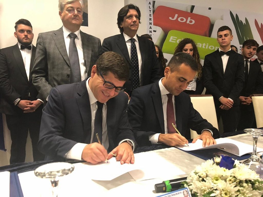 Il Ministro dello Sviluppo Luigi Di Maio e il Sottosegretario all’Istruzione Salvatore Giuliano firmano a Pomigliano D’Arco il Protocollo MIUR-MISE per orientare e rafforzare le competenze dei giovani studenti