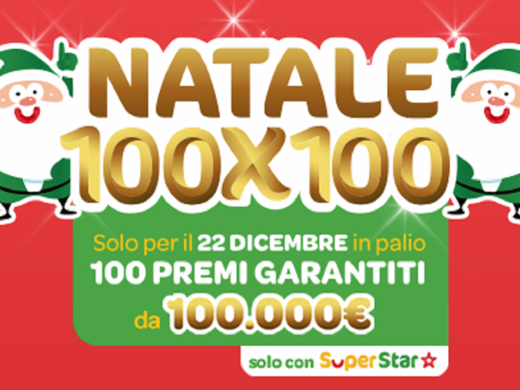 In ogni schedina con Superstar convalidata si trovano due codici alfanumerici univoci validi per l’iniziativa Natale 100X100 e ben cento giocatori si uniranno ai fortunati che nell’ultima estrazione hanno centrato i 5 da quasi 60mila euro ciascuno.