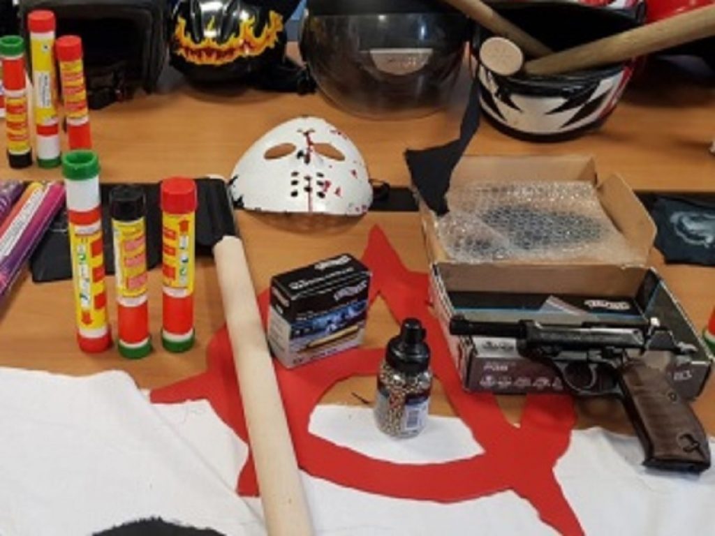 Un’abitazione privata era invece utilizzata come deposito per materiale esplodente, armi improprie e oggetti adoperati durante le manifestazioni di piazza.