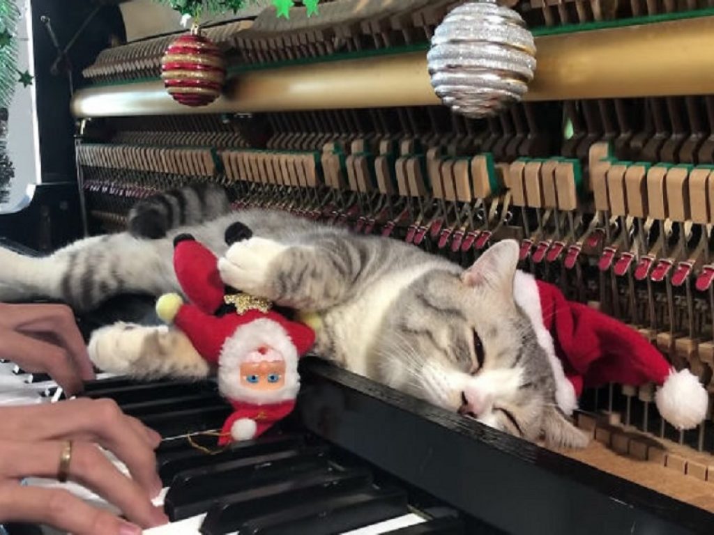 Crogiolarsi a suon di musica? Questo gatto sa come fare… letteralmente. Sta facendo il giro del web il video di un felino di nome Haburu che si trastulla con i martelli del pianoforte mentre il pianista Thầy Minh suona “Wish You a Merry Christmas”.