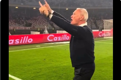 Claudio Ranieri dopo la vittoria del suo Cagliari a Bari, che vale la promozione in serie A, sgrida i tifosi sardi che urlano “Serie B, serie B” e chiede di applaudire i rivali