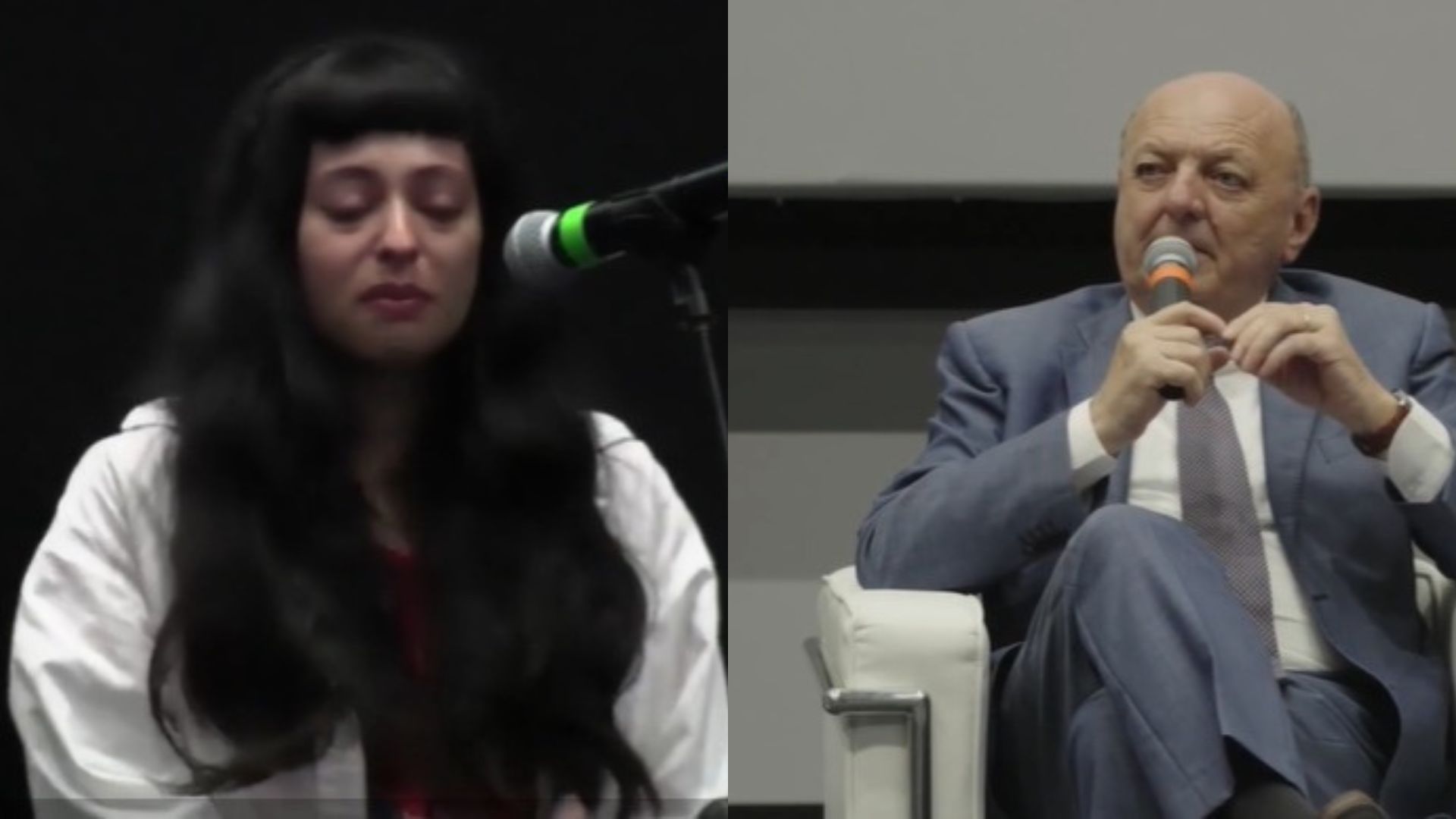 La ragazza prende la parola dalla platea: “Confesso che ho molta paura per il mio futuro”, arrivano le lacrime, “soffro di ecoansia. Alle volte penso che non ho un futuro. La mia terra brucia, in questi giorni in Sicilia sta bruciando tutto. non so se voglio avere figli. La mia domanda è: voi parlate di 2030, 2050, obiettivi che sento lontani… lei non ha paura per i suoi figli, per i suoi nipoti?”.