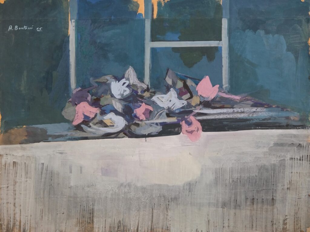 Le grandi tempere della Bertoni e i suoi olii, che provengono da uno studio più attento, ci riportano a quella opacità del sentimento che fa del quadro memoria prima che rappresentazione, che prende alla gola come un ricordo prima che raffigurazione. Il critico d’arte Raffaele De Grada riteneva che Anna Bertoni avesse passato il confine incerto tra diletto nel dipingere e necessità di comunicare. Nell’ambito dell’arte ha superato con successo il conflitto tra ragioni poetiche e sentimento di storia, nell’originale disporsi delle varie personalità a segnare con la propria opera il tempo.
