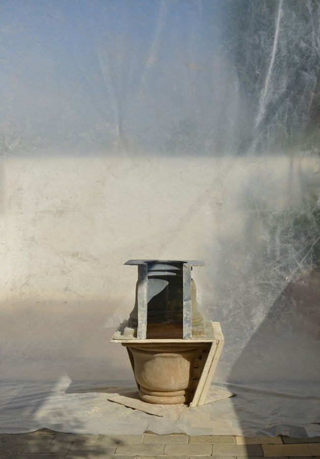 Al piano terra, una selezione di calchi originali appartenenti all’archivio dell’artista segna il punto di partenza della mostra. Provenienti dalla fabbrica Koromias di Nicosia, ormai in disuso, i calchi erano stati utilizzati in precedenza per la costruzione non solo del Palazzo Arcivescovile, ma anche di numerose altre chiese di Cipro. Alcuni di questi calchi trascendono il loro status di manufatti storici, emergendo come sculture autonome, in parte rivestite con foglia d’oro, che nelle parole dell’artista fungono da “negativi dogmatici”.