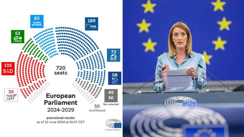 Elezioni Europee, le proiezioni del prossimo Parlamento Ue: quota 462 per Ppe, Socialisti, Renew e Verdi. Metsola: “Il centro europeista costruttivo ha tenuto”