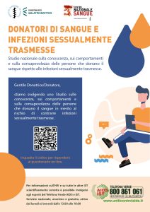 Lanciata in collaborazione con il Telefono Verde AIDS e Infezioni Sessualmente Trasmesse (TV AIDS e IST) dell’Istituto Superiore di Sanità, la ricerca prevede la somministrazione ai donatori di sangue di una survey, da compilare in completo anonimato: il questionario è stato messo a punto a seguito di un’analisi degli interventi di counselling telefonico del TV AIDS e IST e delle informazioni raccolte attraverso le interviste post donazione (Decreto Ministeriale 18 gennaio 2018) e registrate nel Sistema informativo dei servizi trasfusionali (SISTRA).