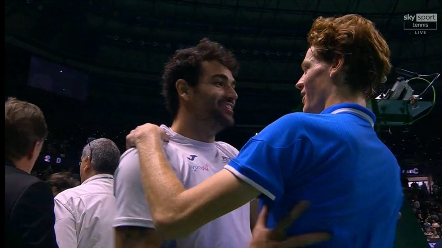 “E’ sempre dura, non c’è nulla di scontato. Ha dato una mano importante oggi Matteo (Berrettini, ndr) a vincere il suo singolare, sia per la sua confidenza ma soprattutto alla squadra. Tutti noi proviamo a dare il massimo, in quel senso avevamo già vinto. Non possiamo controllare tutto, non possiamo controllare i risultati, giocare in una situazione non semplice… però mi piace, sono questi i momenti per cui mi alleno. Oggi era una partita molto difficile, molto dura. Siamo tutti contenti di essere in una finale di Coppa Davis”. Sono le parole del tennista italiano Jannik Sinner ai microfoni della Rai, subito dopo aver battuto l’australiano Alex De Minaur nella seconda semifinale del singolare di Coppa Davis in corso a Malaga (Spagna). Vittoria che, insieme a quella di Matteo Berrettini, porta l’Italia in finale, domani contro l’Olanda.