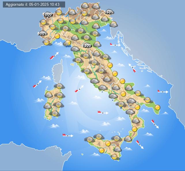 Le previsioni meteo di oggi, mercoledì 8 gennaio 2025: tempo più stabile su tutte le regioni, residua instabilità al Sud peninsulare