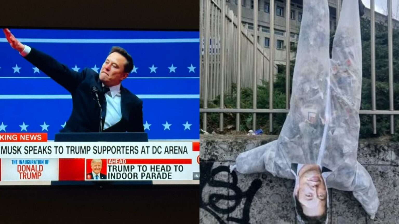 Un fantoccio con la faccia di Elon Musk appeso a testa in giù in piazzale Loreto a Milano, accompagnato dalla scritta “C’è sempre posto a piazzale Loreto, Elon”. È l’azione dimostrativa, velatamente minacciosa, rivendicata dal profilo Instagram del collettivo studentesco universitario “Cambiare rotta” di Milano, in risposta al gesto simile al “saluto romano” che il patron di Tesla ha fatto platealmente durante la cerimonia di insediamento del presidente Usa Donald Trump. E la foto del manichino con la faccia di Musk sta letteralmente facendo il giro del mondo, in poche ore è diventato virale sui social, dove viene affiancata ad un’altra immagine molto forte. Si tratta di quella in bianco e nero in cui appare il corpo ormai senza vita di Benito Mussolini, issato per i piedi di una pensilina e lasciato a testa in giù proprio in quella stessa piazza, il 29 aprile del 1945.