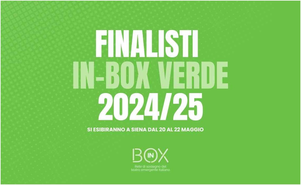 Sono stati resi pubblici gli spettacoli finalisti di In-Box Verde 2024/25, progetto dedicato alla valorizzazione e promozione del teatro emergente italiano per le nuove generazioni. Dopo un meticoloso processo di selezione sulle numerose candidature pervenute, i partner della rete hanno selezionato le otto compagnie che si esibiranno a Siena dal 20 al 22 maggio in occasione di In-Box dal Vivo, fase finale di selezione del progetto.