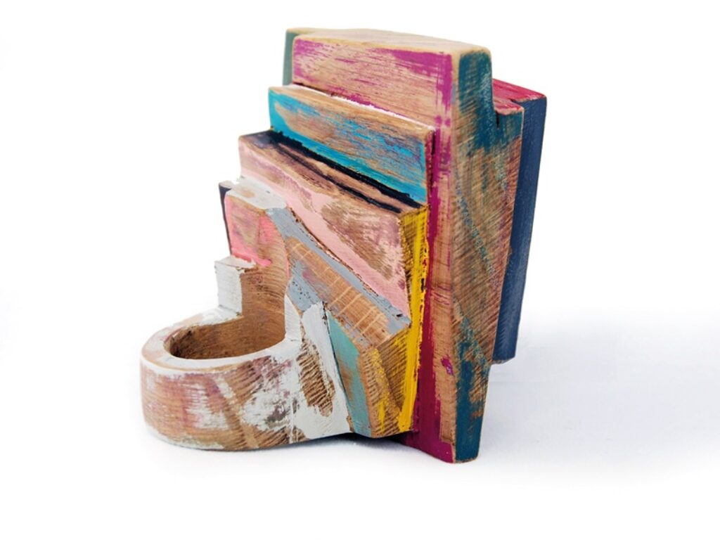 La genesi è un pezzo di legno grezzo ed informe. Bonvicini utilizza tecniche e strumenti diversi a seconda delle fasi di lavorazione e del tipo di obbiettivo: la motosega per ridurre le dimensioni, lo scalpello, le frese per le parti più minute, le seghe giapponesi per ottenere parti geometriche e tonnellate di carta abrasiva … Tutto il legno utilizzato da Bonvicini proviene da recuperi.