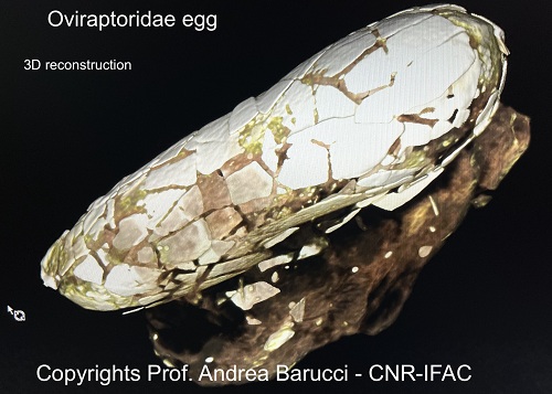 Si sono recentemente concluse alcune indagini scientifiche su due esemplari di uova di dinosauro, risalenti al Cretacico Superiore (circa 70-85 milioni di anni fa), provenienti dalla Cina. Questo studio, che rientra tra le attività dedicate all’applicazione di tecnologie avanzate ai beni culturali, con un focus specifico sulla paleontologia, è stato coordinato da Andrea Barucci dell’Istituto di fisica applicata “Nello Carrara” del Consiglio nazionale delle ricerche (Cnr-Ifac). La ricerca ha impiegato un’ampia gamma di metodologie avanzate, tra cui tecniche di micro-tomografia computerizzata (micro-TC), tomografia computerizzata (TC) e spettroscopie ottiche. L’obiettivo primario era indagare le microstrutture interne e le caratteristiche superficiali delle uova fossili; queste provengono da distinte aree geografiche della Cina e appartengono a due famiglie di dinosauri diversi: probabilmente un Oviraptoroide e un Terizinosauro (o un Adrosauro). Si presentano in un buono stato di conservazione e offrono un’interessante opportunità per lo studio. Il progetto ha coinvolto un team multidisciplinare di esperti. Le uova provengono dalle collezioni didattiche di Progetto Theia (www.progettotheia.it) di Paolo Conte e Antonella Senese, divulgatori scientifici, che le utilizzano in alcune delle attività divulgative per gli Istituti scolastici di ogni ordine e grado.