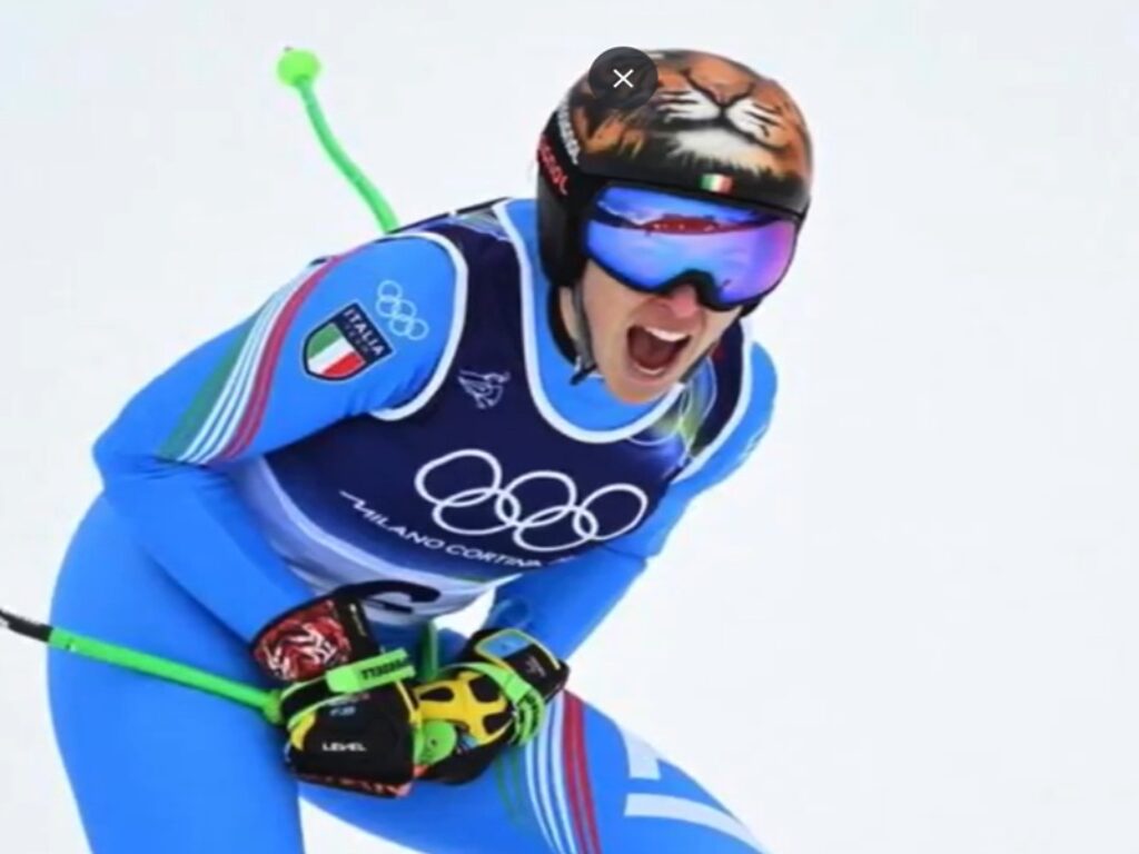 Quando scende lei, col pettorale numero 6, la nebbia non ha ancora avvolto la cima delle Tofane. Per cui Federica Brignone azzanna la pista del SuperG con lo sguardo al traguardo, porta dopo porta, accoltellando la neve fresca e compatta. E va giù evitando il disastro che invece coglie molte delle avversarie, Sofia Goggia compresa. Va giù come se non avesse azzerato una stagione fatta di chirurgia e fisioterapia invece che di preparazione fisica. Va giù e si prende la medaglia d’oro. Il suo primo oro olimpico, dopo l’argento a Pechino 2022 e i due bronzi (Pechino e Pyeong Chang). 1’23″41 dribblando gli inciampi di un tracciato scorbutico, rischia di cadere una, due, tre volte. Ma resta in linea con la storia. Davanti a Mattarella.