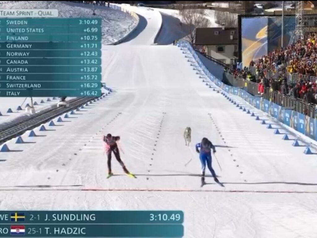 Le immagini sono incredibili e da Milano-Cortina 2026 stanno facendo il giro dei social. Un cane, un lupo cecoslovacco, ha invaso la pista durante la team sprint femminile dello sci di fondo in scena al Lago di Tesero. Pochi metri prima del traguardo, l’animale è comparso sul manto bianco mentre le atlete completavano la gara tra lo stupore di pubblico e addetti ai lavori, quest’ultimi accorsi per agire in caso di eventuali pericoli.