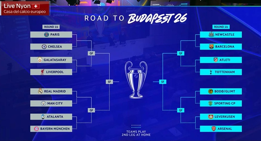 Si sono appena conclusi a Nyon i sorteggi degli ottavi di finale di Champions League. L’urna ha definito, non solo le sfide del prossimo turno, ma l’intero tabellone fino alla finale di Budapest.