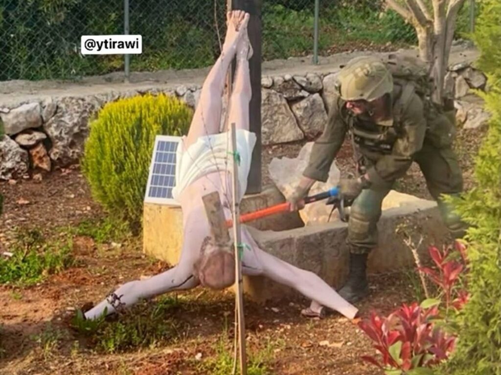 Un soldato infierisce con un’accetta contro una statua di Gesù, con l’evidente intento di mozzargli la testa. La foto, scattata nel Libano meridionale, territorio ormai occupato dall’esercito israeliano, è diventata un altro “casus belli” tra mondo cristiano e le nazioni ‘belligeranti’ in Medio Oriente. Questa volta ad essere chiamato in causa è Israele, già responsabile di aver provato, a Pasqua, a fermare il Cardinale Pierbattista Pizzaballa, diretto al Santo Sepolcro.